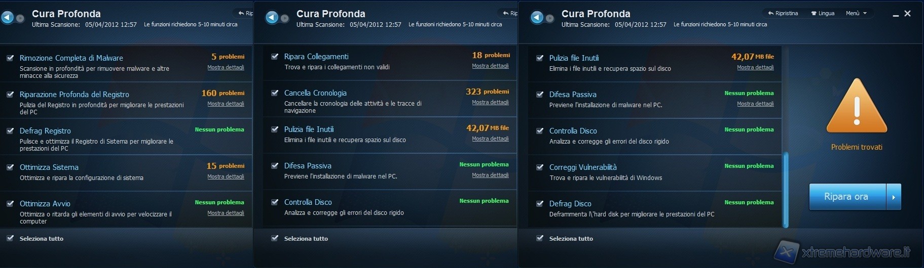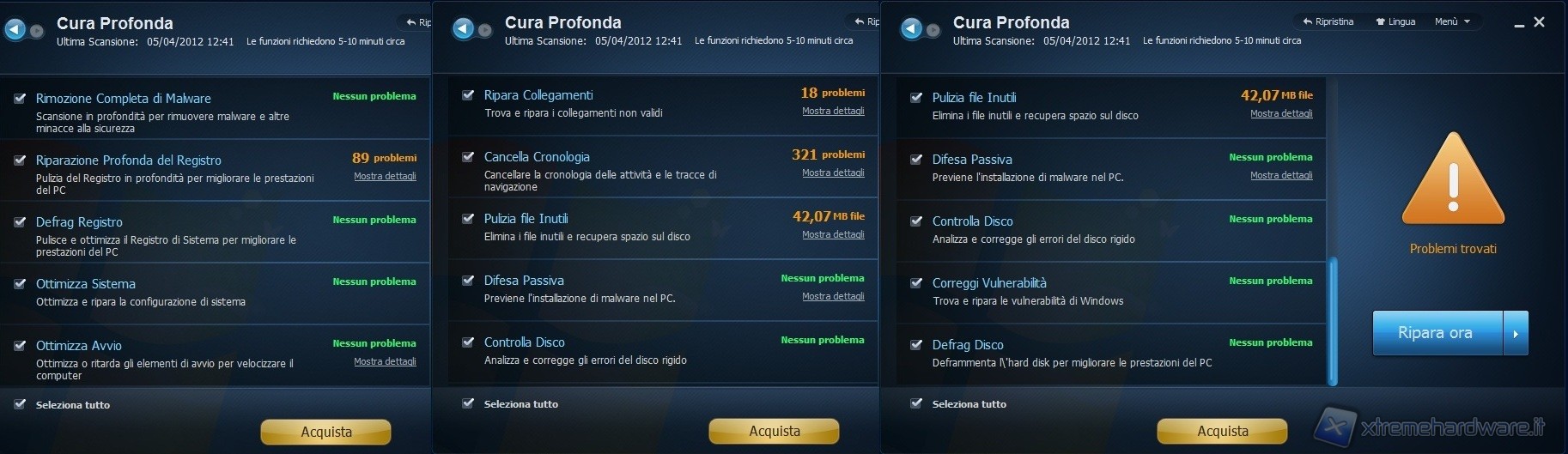 Come mostrato dalle foto qui sopra, per quanto riguarda i metodi di scansione nella modalità Cura Veloce, la versione Free e Pro si equivalgono, infatti gli elementi rilevati sono i medesimi.