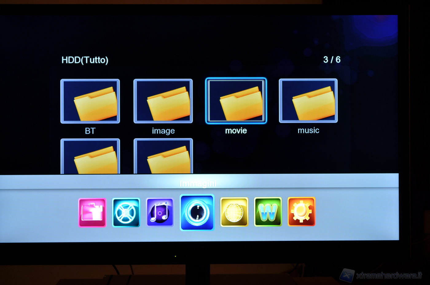 Le altre cartelle raccolgono invece immagini, musica e film individuati tra i vari dispositivi collegati al media player, tale operazione di indicizzazione viene effettuata non appena colleghiamo una nuova periferica di storage. In questo modo avremo sempre un’ampia libreria in cui cercare i nostri contenuti multimediali.