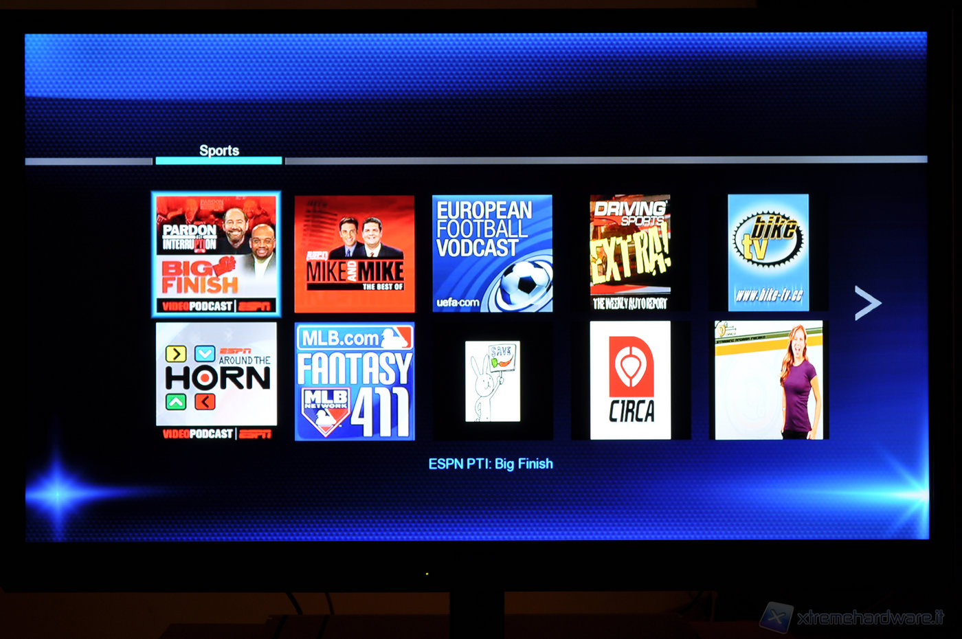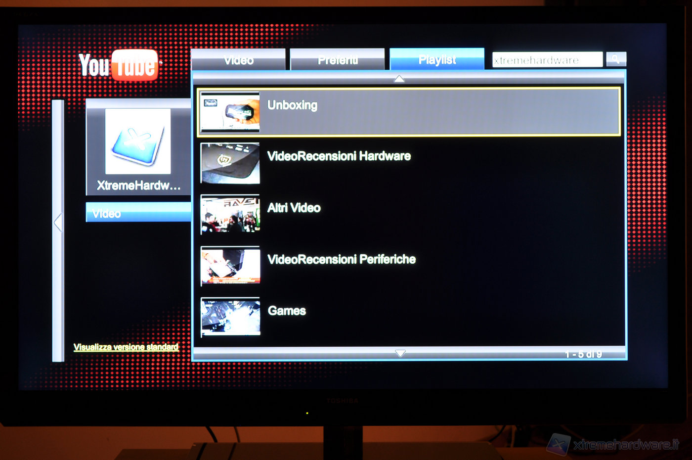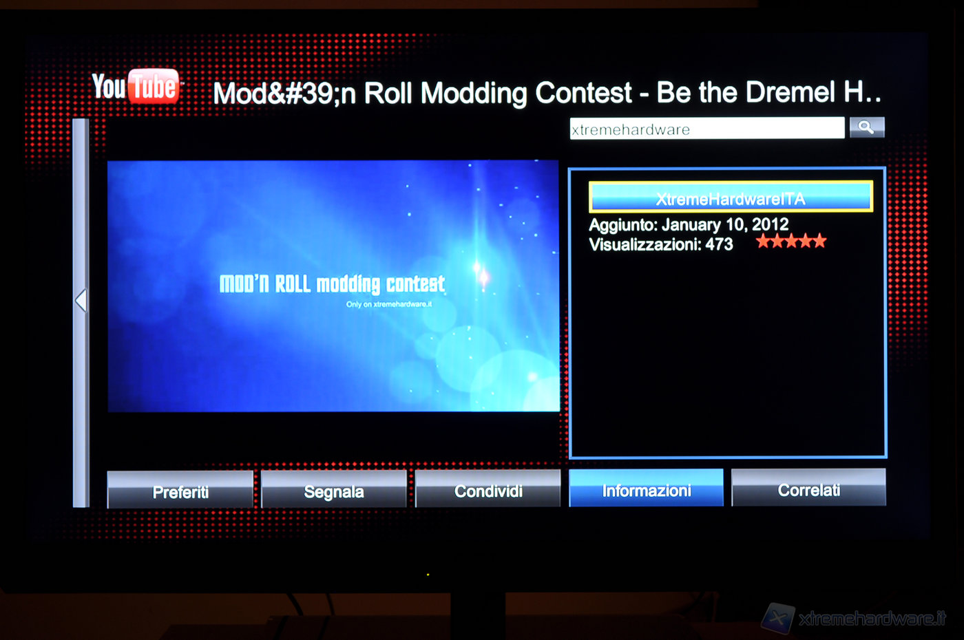 L’applicazione YouTube si presenta in modo simile alla versione per computer: sulla sinistra sono infatti presenti durante la riproduzione i video correlati. Attraverso il tasto zoom potremmo attivare la modalità schermo intero, da cui si potrà uscire attraverso il tasto back. La riproduzione è ovviamente fluidissima e il caricamento abbastanza rapido. Abbiamo riscontrato dei blocchi sistematici al primo accesso a questa applicazione, in questo caso sarà sufficiente tornare al menù precedente con il tasto back e selezionare di nuovo l’applicazione YouTube; un bug che probabilmente sarà risolto dai prossimi aggiornamenti del firmware.