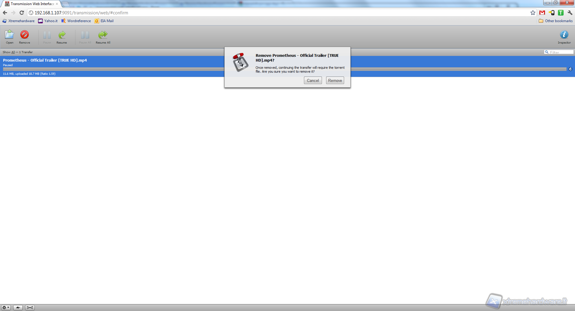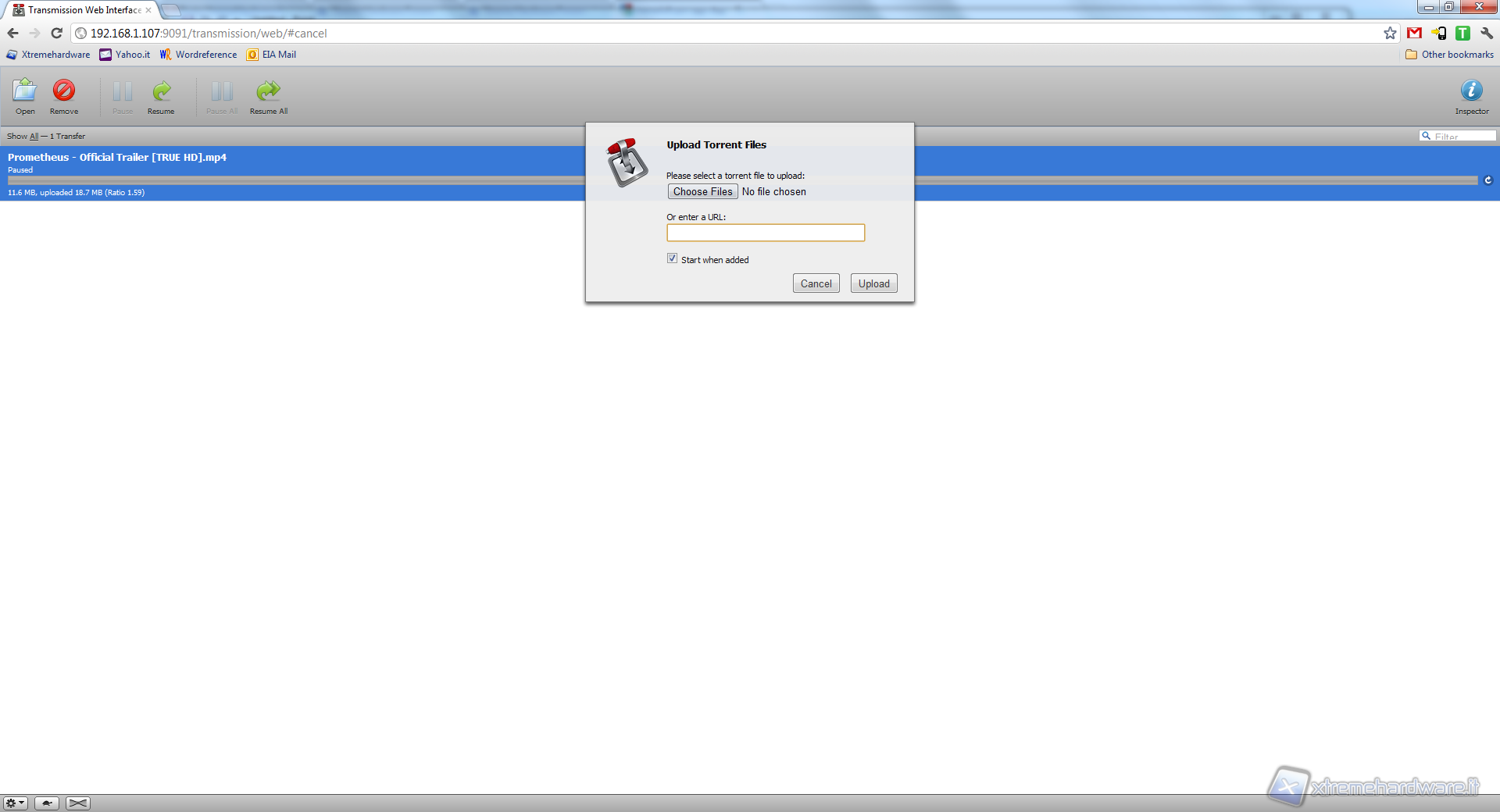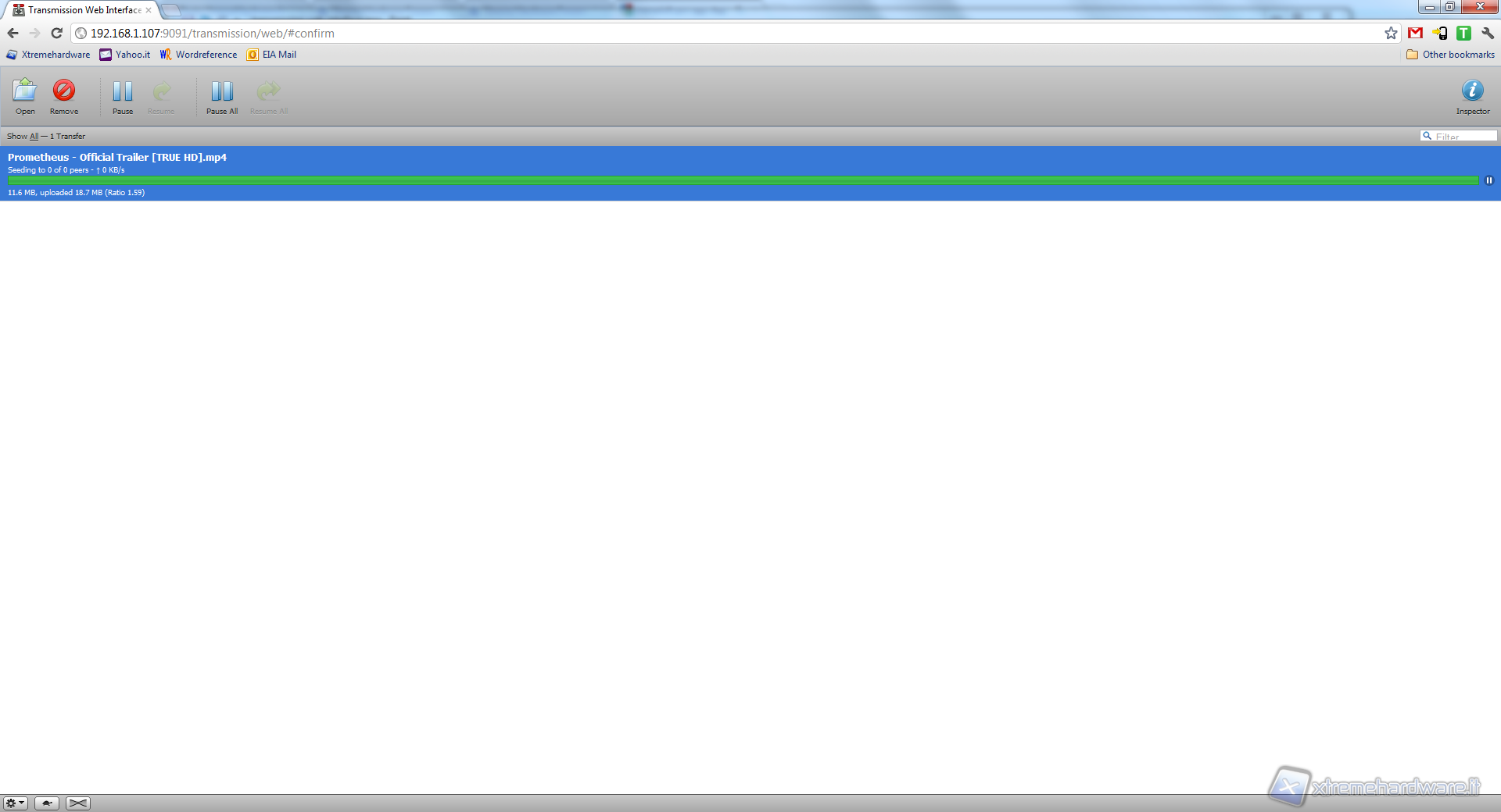 Un servizio con funzionalità di controllo del client bit-torrent è presente anche sulla porta 9091. Tale servizio permette il monitoring dei download e il caricamento di file per il download tramite upload del file .torrent o inserimento dell’URL magnet link.