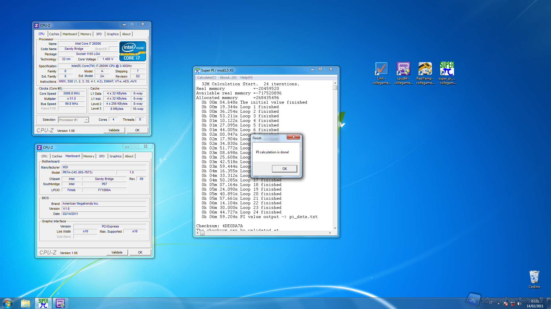 Una volta ottenuto uno score Rock Solid, ci siamo dedicati ad una serie di “Quick Tests”, in questo caso abbiamo adoperato il tool SuperPI, lanciandolo in modalità 32MB, quindi come si può evincere dagli screenshot di seguito pubblicati, siamo riusciti a raggiungere e concludere il test alla frequenza di 5100mhz! Certamente non male per una mainboard di questa fascia.