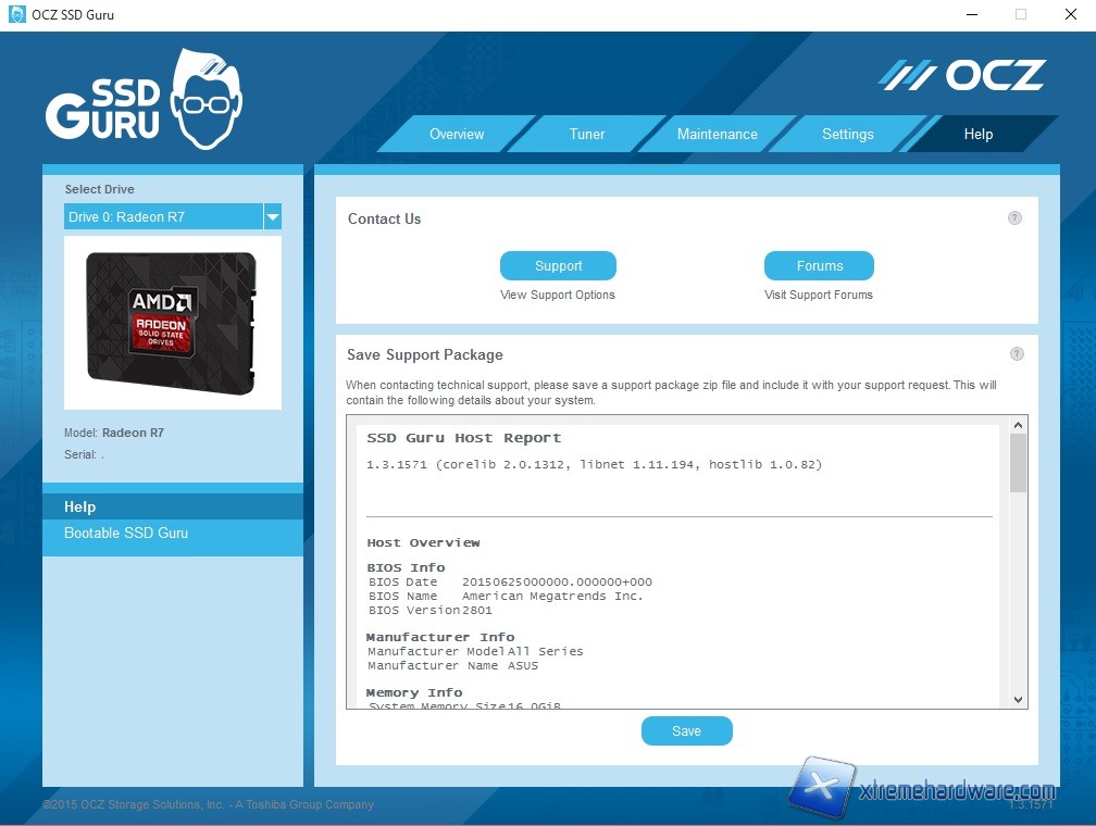 Infine troviamo la voce ''Help'' che ci darà la possibilità di contattare direttamente il supporto OCZ salvando una sorta di Log in tempo reale.